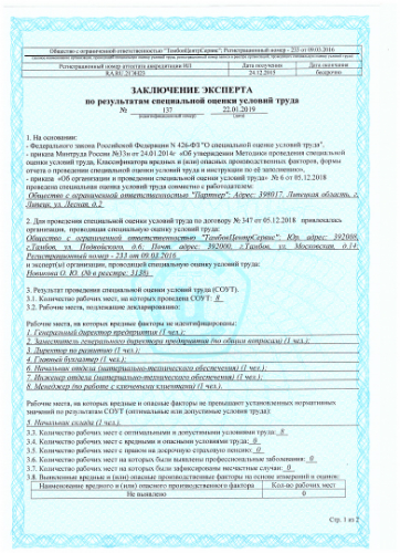 Результаты специальной проверки условий труда